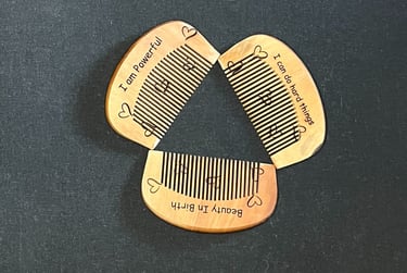 Hello Life BIrthing Services has the education you need to approach your birth in a alm confident way. We are a one stop shop; meaning we have the education you need, the birth combs for contraction relief or as a momento of such a beautiful journey and custom Birth Affirmation sets. Contact us today with any questions or concerns. Please give 24-48 for turn around time.