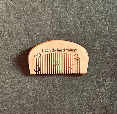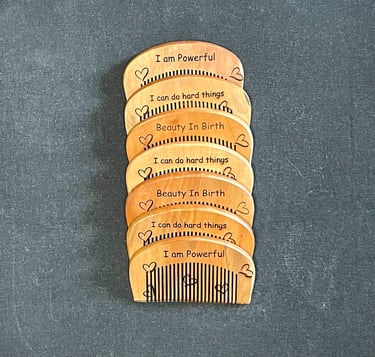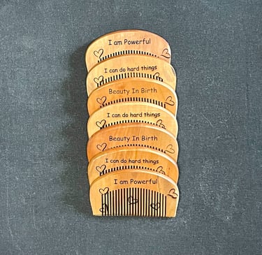 Crafted from smooth, premium wood and curved to fit comfortably in your hand, our Wooden Birth Comb is more than just a tool—it’s a grounding companion for labor. Thoughtfully inscribed with the empowering affirmation “I can do hard things,” this compact comb offers both emotional support and physical relief when gripped during contractions. Its natural wood tone and soothing texture provide a calming, rustic touch to your birthing space. Small enough to fit in your birth bag or pocket, it’s a powerful reminder of resilience and inner strength—wherever your birth journey takes you.